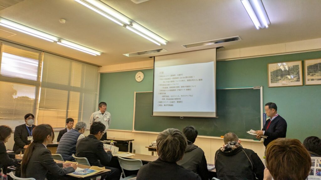旧内海中学校に戻り、地区の取組補足説明・意見交換を行いました。